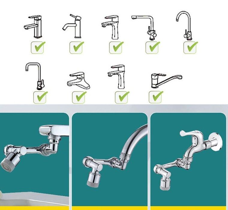 1080 Derece Dönebilen Robotik Kol Musluk Başlığı - Musluk Uzatma Aparatı Ucu