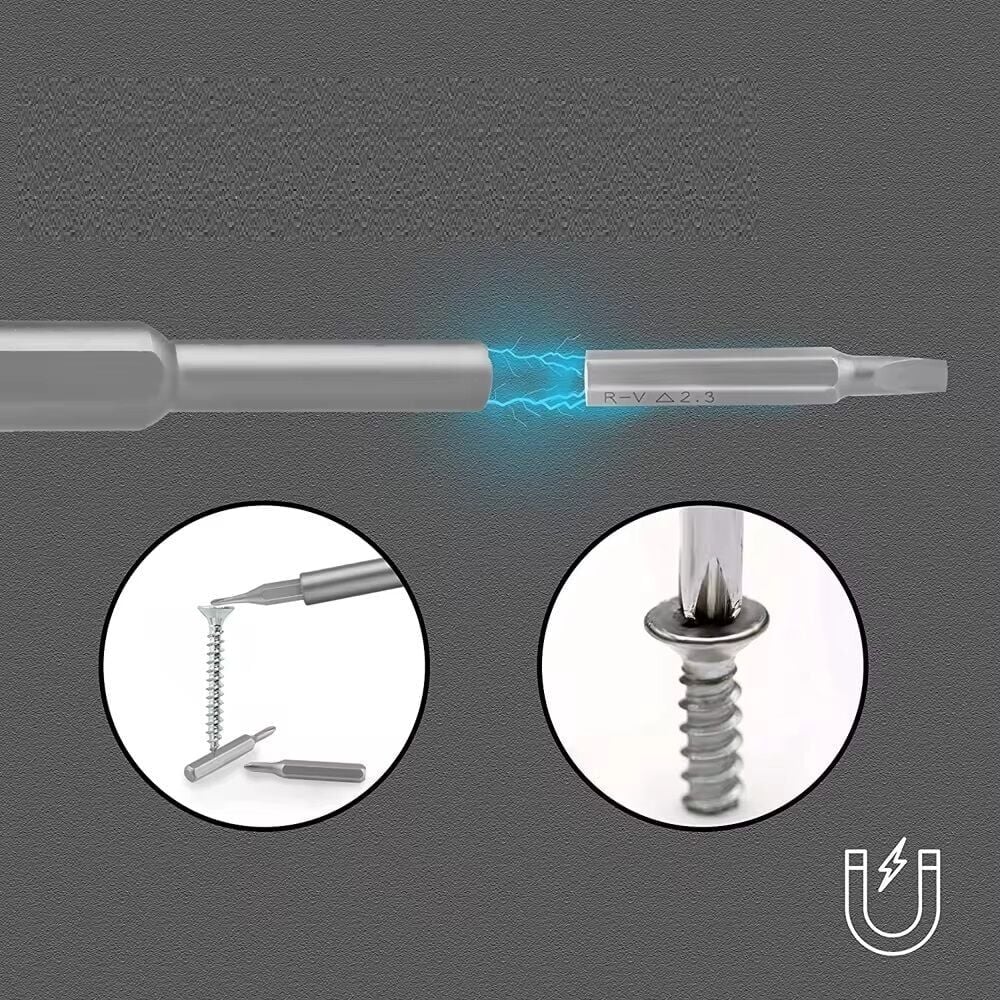 24-in-1 tornavida seti: bu Set 24 farklı tornavida ucu içerir, bu da çok yönlü ve çeşitli görevler için uygundur. Cep telefonları, gözlükler, kameralar, saatler ve diğer ev eşyalarını onarmak için özelleştirilebilir.