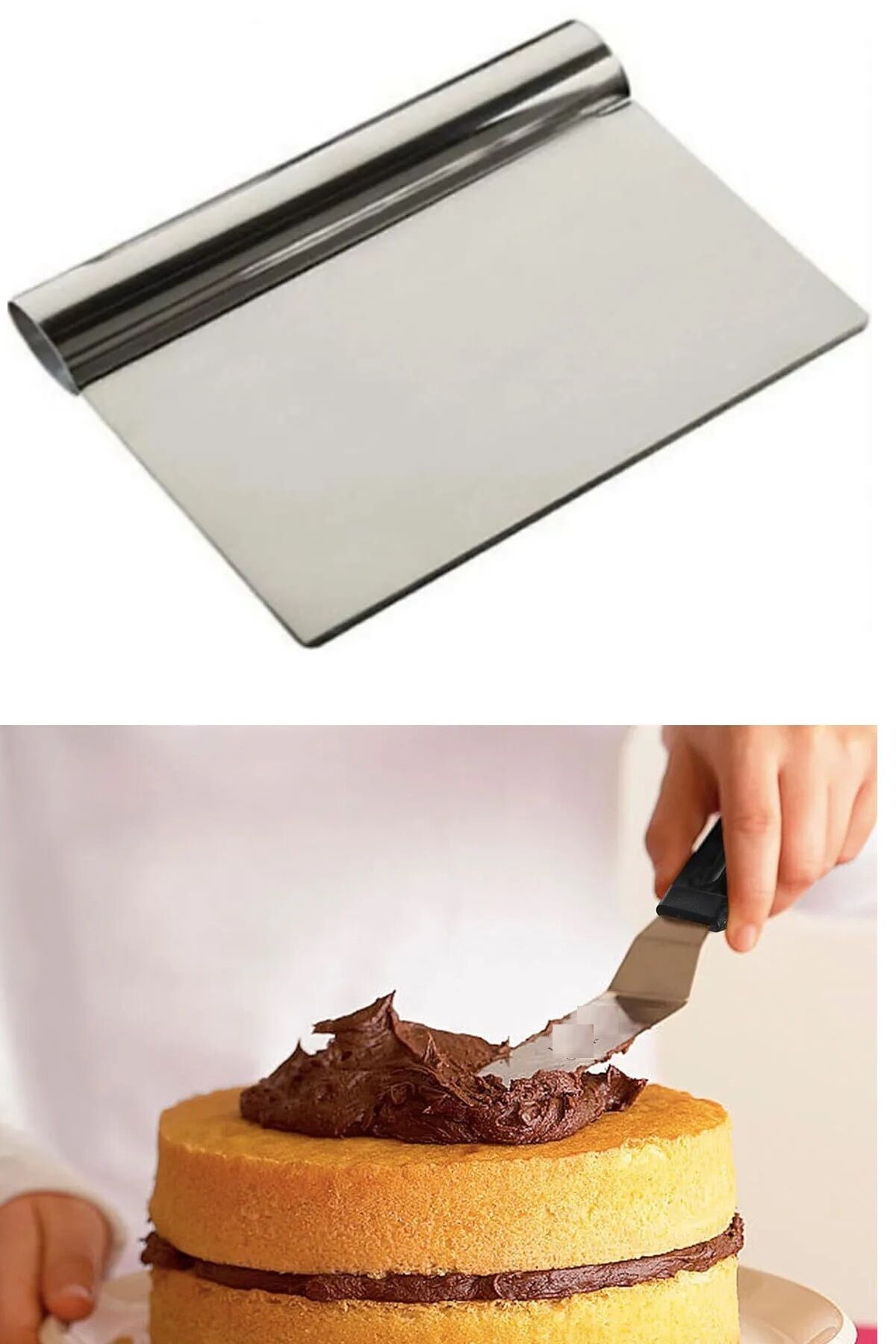 2li Set Hamur Şekillendirici Eğik Pasta Spatulası +Metal Hamur Kesici Kazıyıcı Spatula