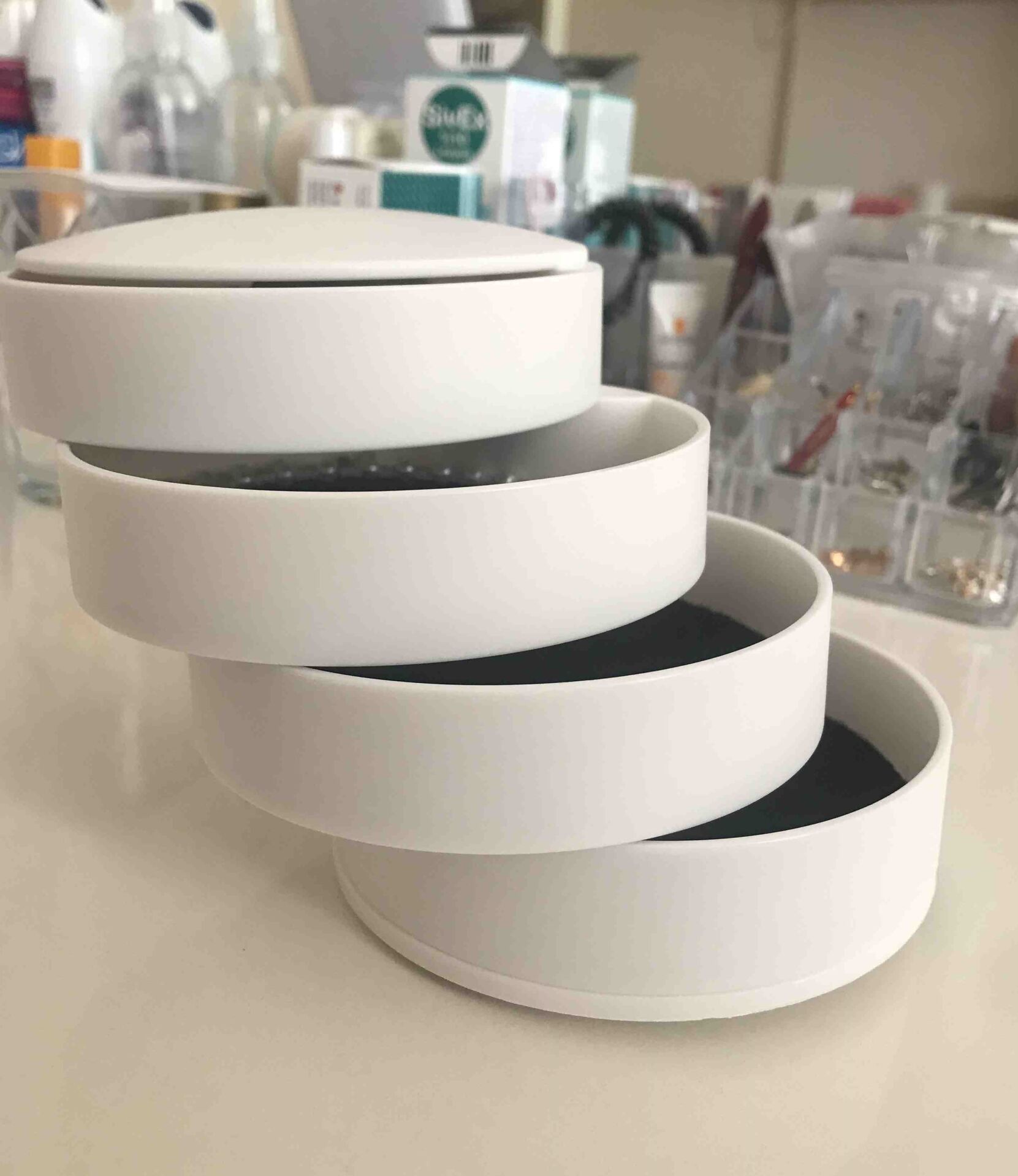- 4 Katlı Dönebilen Silindir Takı ve Makyaj Organizeri