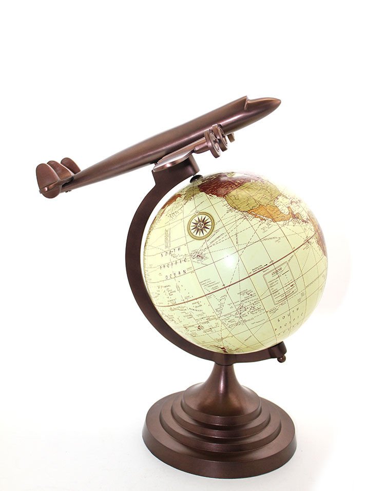 40X25 CM PİRİNÇ UÇAK TASARIMLI DÜNYA KÜRE