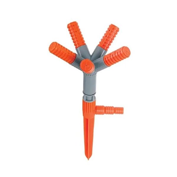 5 yönlü saplamalı sprink fıskiye, geniş alanlarda homojen ve çok yönlü sulama imkânı sunar. Beş ayrı çıkış başlığı sayesinde suyu farklı yönlere dağıtarak maksimum kapsama sağlar. 360 derece dönebilen yapısı ile tarlalarda, bahçelerde, çim alanlarda ve sera sulamalarında etkili sonuçlar verir. Alt kısmındaki sivri saplama aparatı sayesinde toprağa kolayca sabitlenir. 1/2", 5/8" ve 3/4" hortum bağlantılarına uyumlu girişiyle farklı hortum tipleriyle kullanılabilir. Yüksek kaliteli plastikten üretilmiş olan bu fıskiye, dış etkilere karşı dayanıklıdır ve uzun ömürlü kullanım sunar. Basit kurulumu ve verimli sulama özelliğiyle profesyonel ya da hobi amaçlı kullanım için uygundur.