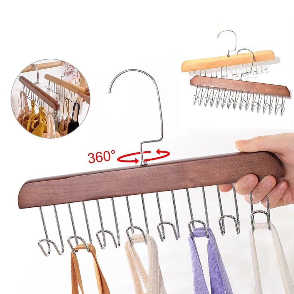 8 Kancalı Askı Çok Fonksiyonlu Ahşap Kemer Kravat Eşarp Dolap Askısı