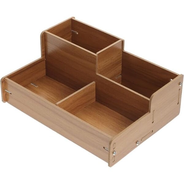 AHŞAP MASA ÜSTÜ DÜZENLEYİCİ KUTUÜrün ÖzellikleriAhşap masa üstü düzenleyici kutu, çalışma alanınızı düzenli ve şık hale getirmek için mükemmel bir çözümdür. Doğal ahşap malzemeden üretilmiş olup sağlam ve dayanıklı bir yapıya sahiptir. Kalem, makas, fırça, cetvel ve diğer ofis ya da makyaj malzemelerinizi düzenli bir şekilde saklamanıza yardımcı olur. Bölmeli yapısı sayesinde farklı eşyalarınızı kategorilere ayırarak kullanabilirsiniz. Şık ve fonksiyonel tasarımı sayesinde ofis masalarında, çalışma odalarında, mutfakta veya makyaj malzemeleri düzenleyicisi olarak rahatlıkla kullanılabilir. Ürün demonte olarak gönderilmektedir ve vidalar ile kolayca monte edilebilir. Hafif ve taşınabilir yapısı sayesinde istenilen her yere kolayca yerleştirilebilir.Paket İçeriği1 adet ahşap masa üstü düzenleyici kutu