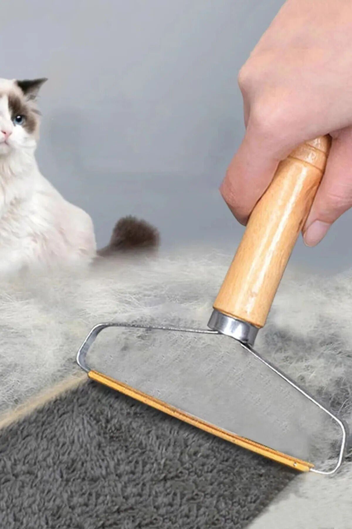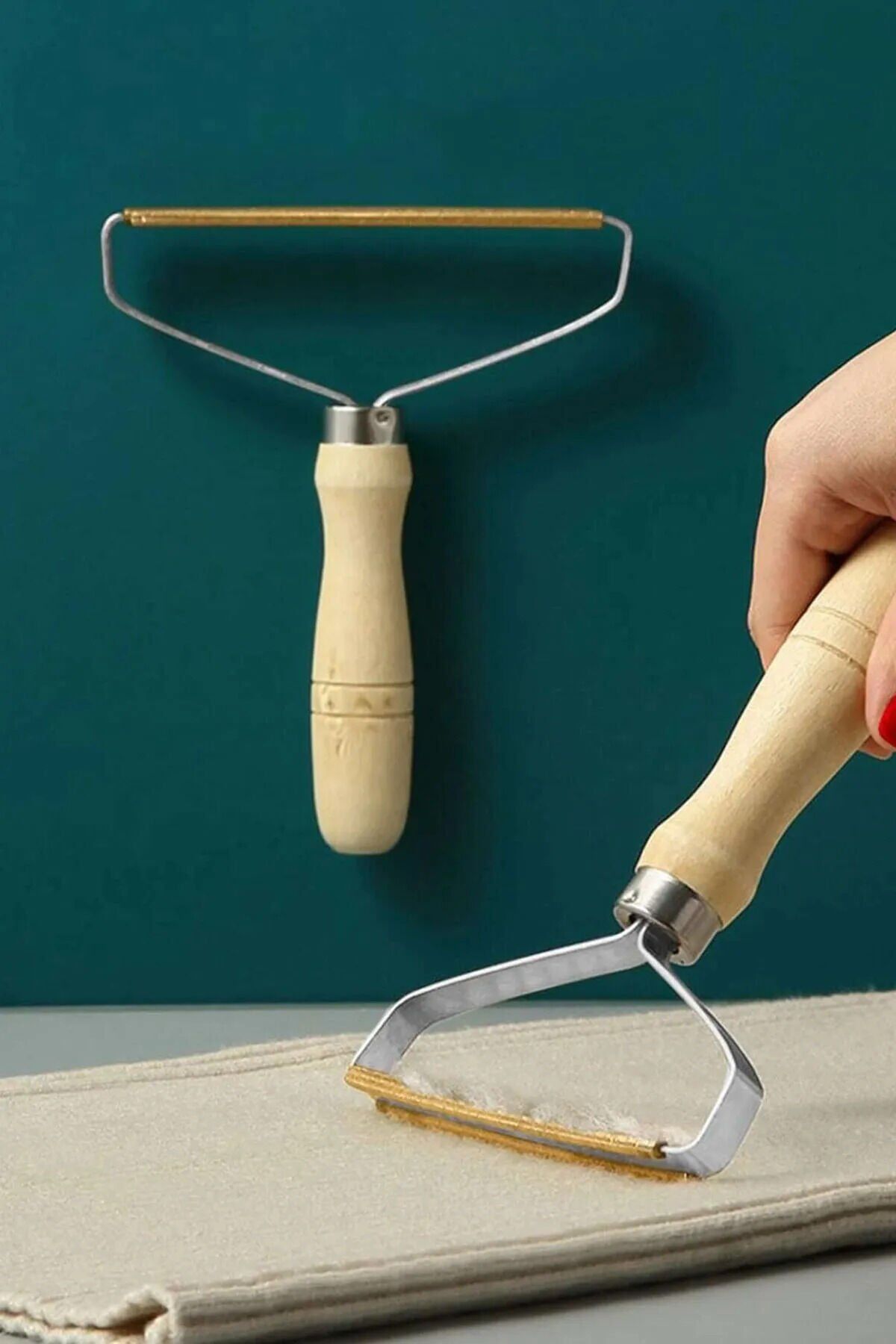 Ahşap Saplı Metal Kazak - Elbise - Halı Tüyü Temizleme Çift Taraflı Tüy Tiftik Toparlayıcı