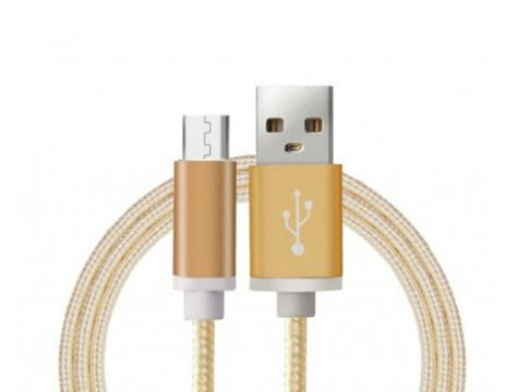 1 Adet Android Örgü Şeklinde Renkli Çelik Şarj Data Kablosu - Gold