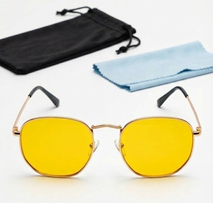 Sarı renkli, özel kaplamalı lens ile üretilen sürücü gözlüğü, ışık parlamalarını azaltan, Avrupa ve