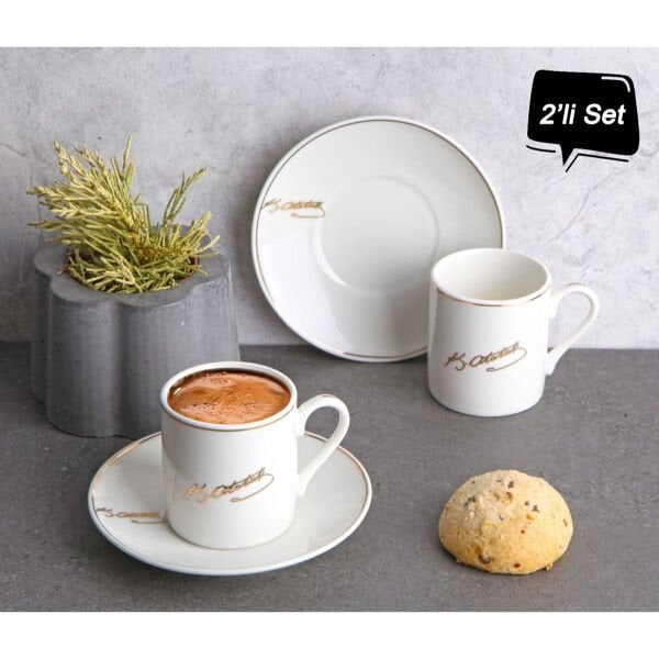 Paket İçeriği1 adet Atatürk İmza Tasarımlı Porselen 2'li Kahve Seti
