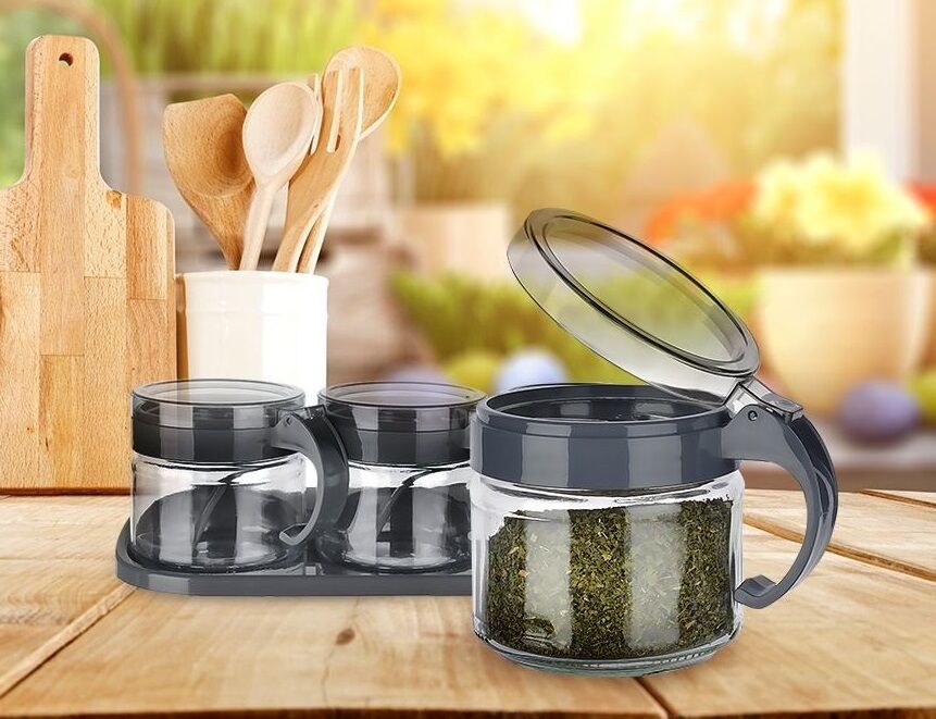 - Tuz, karabiber, pulbiber, nane gibi baharatları düzenleyebileceğiniz baharatlık seti.