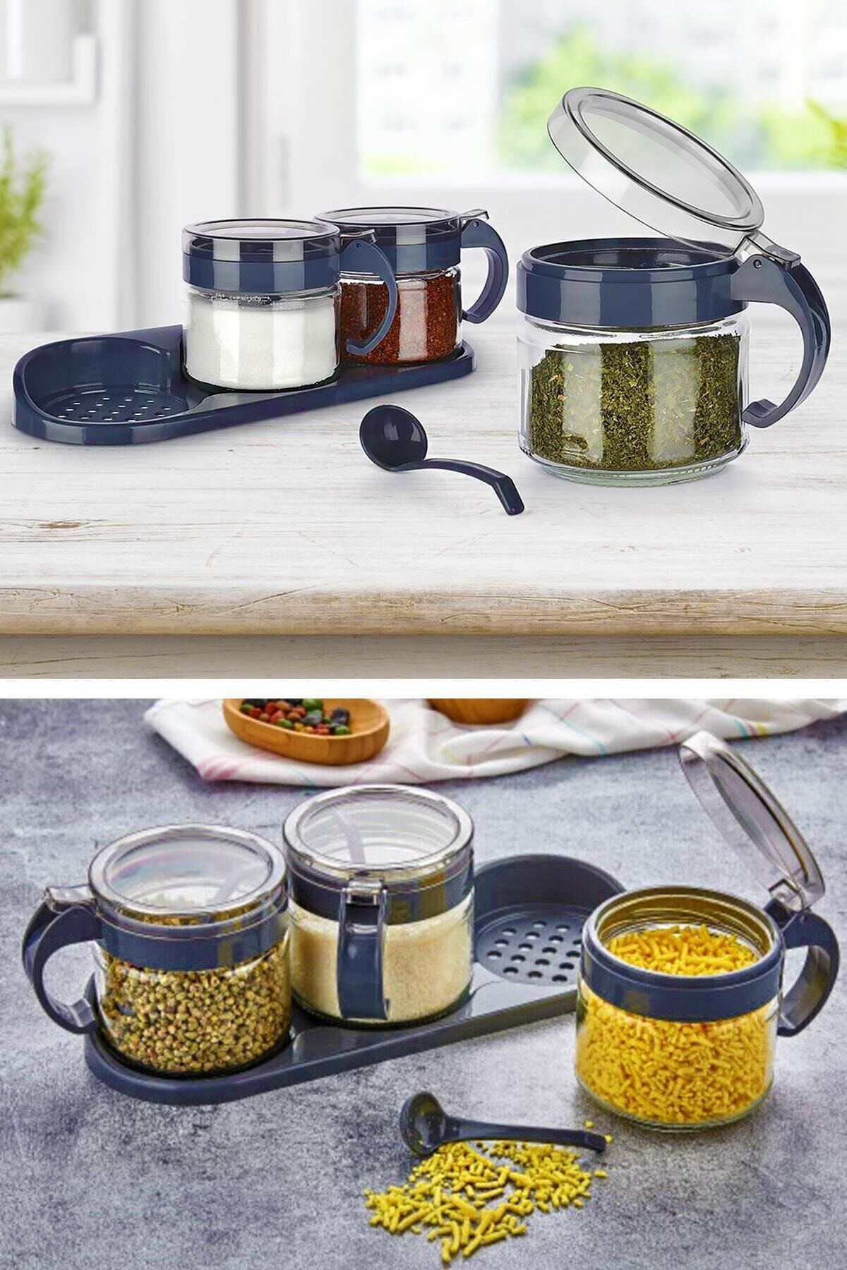Baharat Seti 3 Adet Kaşıklı Standlı Cam Baharatlık seti mutfağınıza modern bir hava katacaktır.