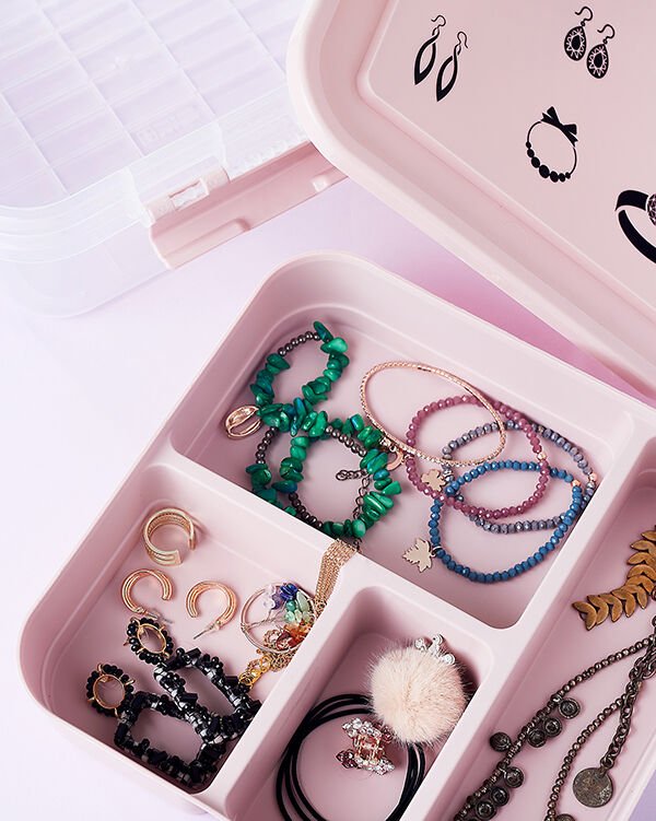 Dağılıp toparlanmak bilmeyen takılar için birebir kurtarıcı saklama kabı ile evde rahat bir düzen sağlar