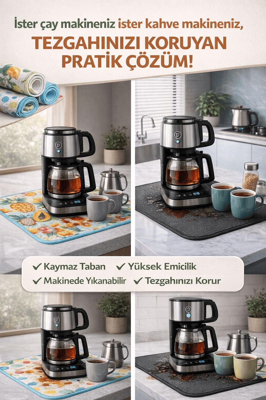 Çay Matı Çay Makinesi % 100 Mikrofiber Altlığı Su Emici Tezgah Koruyucu Kurulama Matı