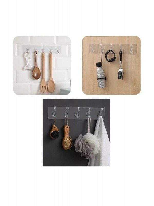 Çok Amaçlı Kendinden Yapışkanlı 5li Şeffaf Askı