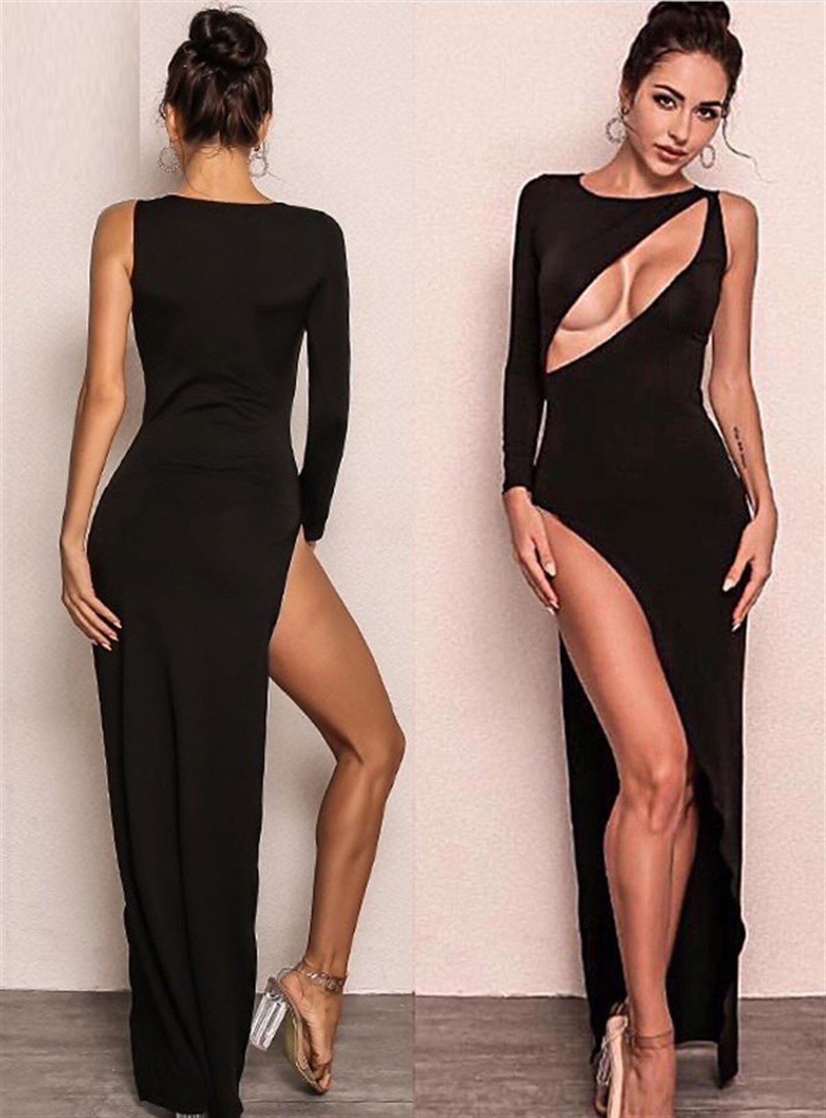 Derin Dekolteli Uzun Yırtmaçlı Elbise