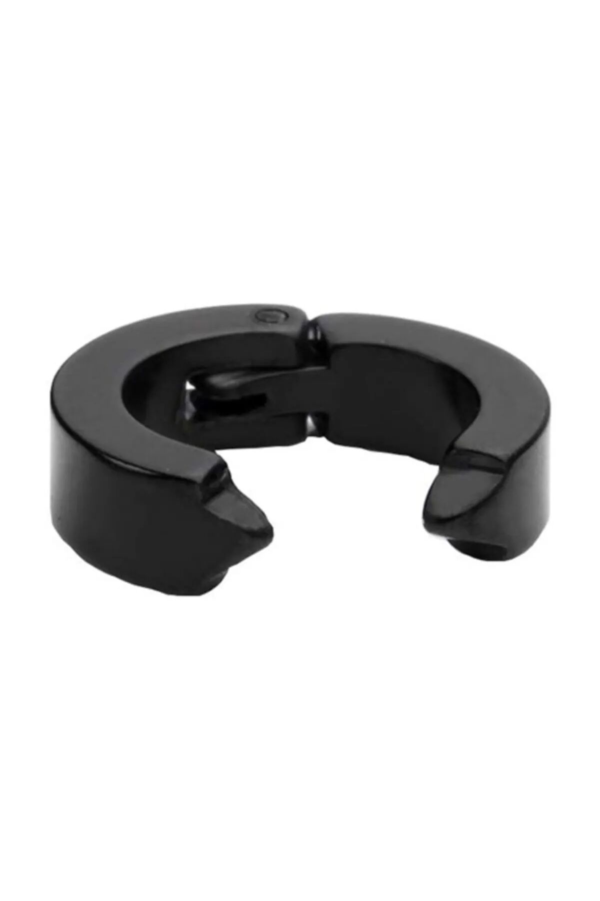 Erkek Küpesi - 1 Adet Siyah Çelik Kıstırmalı Küpe Paslanmaz Atmaz Çelik Siyah Küpe