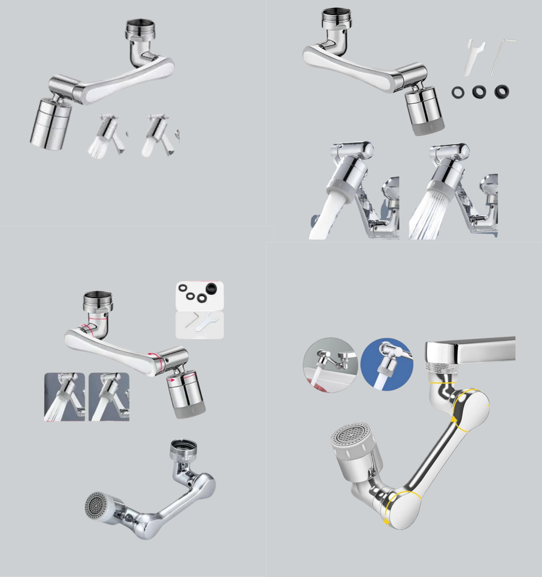 Esnek 1080° Musluk Başlığı 3 Eklemli Hareketli Su Modlu Lavabo Aparatı