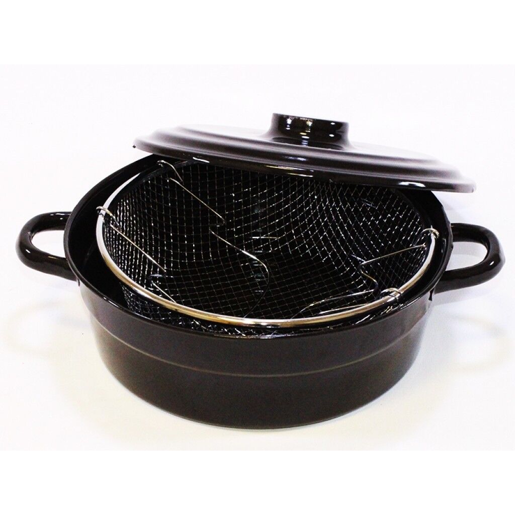 Yanmaz ve yapışmaz Emaye Fritöz Kızartma Tenceresi ile kolay ve pratik bir şekilde leziz kızartmalar hazırlayabilirsiniz.