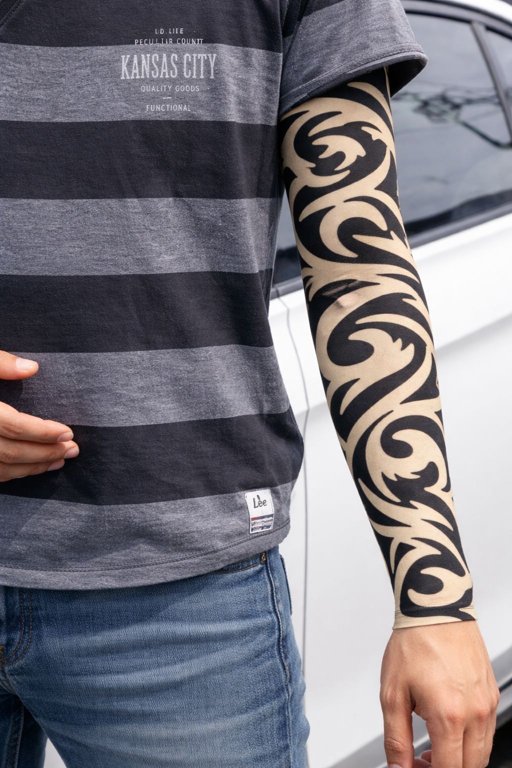 Giyilebilir kol dövmesi 3D baskılı model 14, kalıcı dövme yaptırmadan güçlü ve dikkat çekici bir stil elde etmek isteyenler için tasarlanmış pratik ve gerçekçi bir çözümdür. Kol ve bacak kullanımına uygun olarak üretilen bu geçici dövme çorap seti, yüksek kaliteli 3D baskı teknolojisi sayesinde cilt üzerinde gerçek dövme görünümüne son derece yakın bir etki oluşturur. Likralı ve esnek kumaş yapısı kolu ya da bacağı sıkıca sararak kayma yapmaz, nefes alan dokusu sayesinde cildi rahatsız etmez ve uzun süreli kullanımlarda konfor sağlar. Standart beden yapısı ile farklı kol ve bacak ölçülerine uyum gösterir. Ekstra aparat gerektirmeden sadece giyilip çıkarılabilmesi kullanım kolaylığı sunarken, tekrar kullanılabilir ve yıkanabilir olması ürünü günlük stil ve özel etkinlikler için avantajlı hale getirir. Kostüm ve tema partilerinde, festivallerde, fotoğraf çekimlerinde ve sokak modasında tarzını anında değiştirmek isteyenler için ideal bir tamamlayıcıdır. Acısız, zahmetsiz ve esnek yapısıyla dövme denemek isteyen herkes için güvenli ve etkileyici bir alternatiftir.