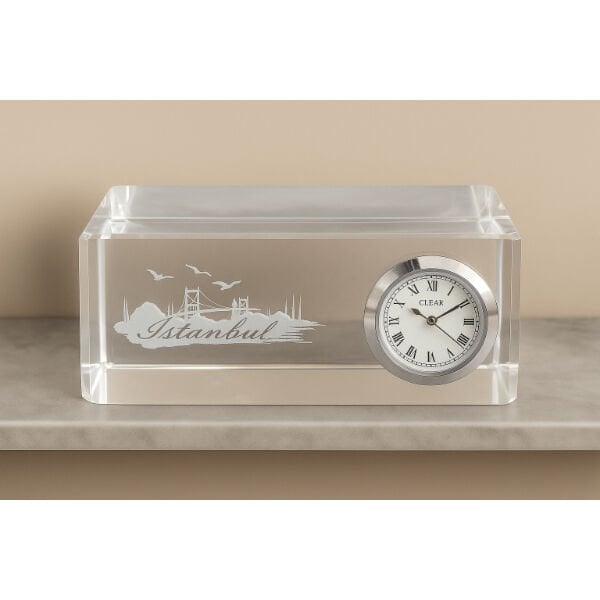 1 adet İstanbul Tasarımlı Kristal Saatli Biblo