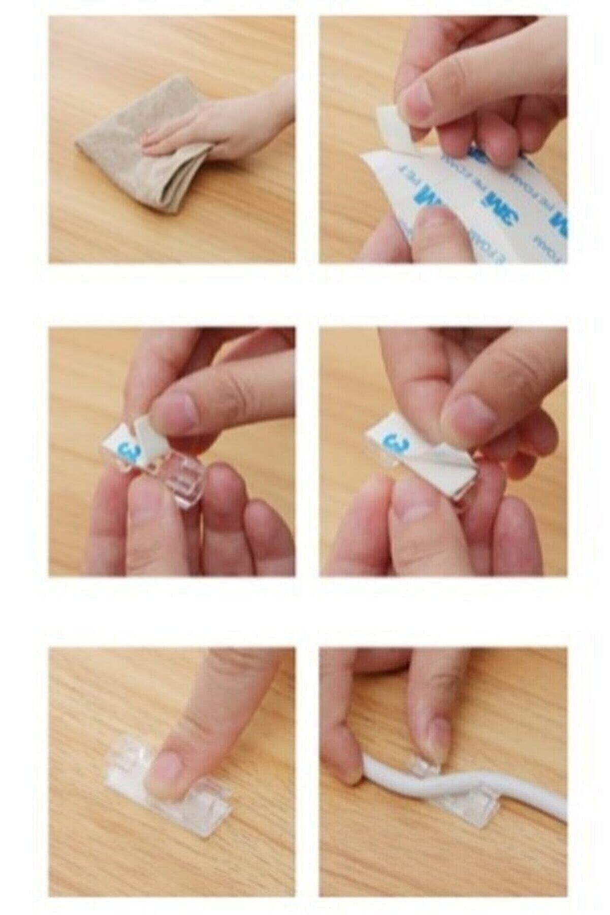 Kablo Sabitleyici Klipsler 20 Adet Kablo Düzenleyici Duvar Fayans Cam Kablo Tutucu Yapışkanlı Klips
