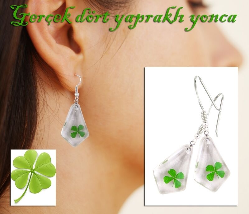 Gerçek Dört Yapraklı Yonca Küpeleri, sizin o yeşil tarlalarda arayıp bulamadığınız 4 yapraklı yoncaları, sizin için bulup, ayağınıza getirdik.