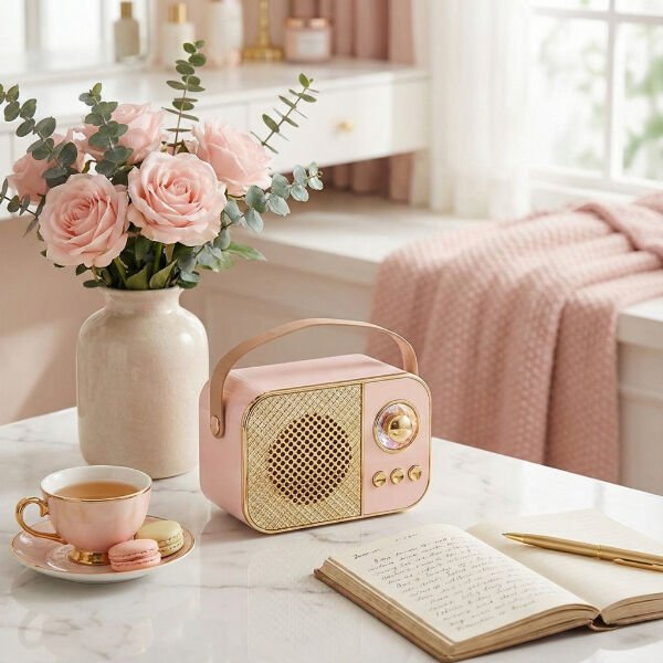 LED AYDINLATMALI HOPARLÖR PEMBEÜrün ÖzellikleriLED Aydınlatmalı Hoparlör Pembe, retro tasarımın modern teknoloji ile birleştiği şık bir ses sistemi arayanlar için mükemmel bir seçimdir. Gövdesindeki altın detaylar ve pastel pembe rengi ile hem dekoratif bir obje hem de güçlü bir hoparlör olarak kullanılabilir. Bluetooth 5.2 teknolojisi sayesinde telefon, tablet veya bilgisayarınıza saniyeler içinde bağlanır ve kesintisiz bir müzik keyfi sunar. USB ve TF kart girişleri ile kablosuz bağlantıya ihtiyaç duymadan da müzik çalabilir, çok yönlü kullanım avantajı sağlar. LED aydınlatması ise ambiyansı güçlendirerek özellikle akşam saatlerinde daha estetik bir görünüm oluşturur.Taşıma sapı sayesinde kolayca taşınabilir ve ev, ofis, bahçe, piknik gibi her ortamda rahatlıkla kullanılabilir. Kompakt boyutu yer kaplamadan güçlü bir ses deneyimi sunarken, retro tarzıyla ortamın dekoruna şıklık katar. Hem günlük kullanım hem de hediye olarak tercih edilebilecek özel tasarımlı bir hoparlördür. Dayanıklı gövdesi uzun ömürlü kullanım sağlarken, kolay kontrol edilebilir tuş yapısı ile pratik bir deneyim sunar.Paket İçeriği1 Adet LED Aydınlatmalı Bluetooth Hoparlör Pembe