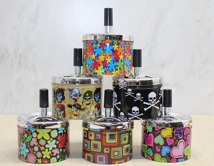 1 adet Metal Renkli Basmalı Küllük Yuvarlak