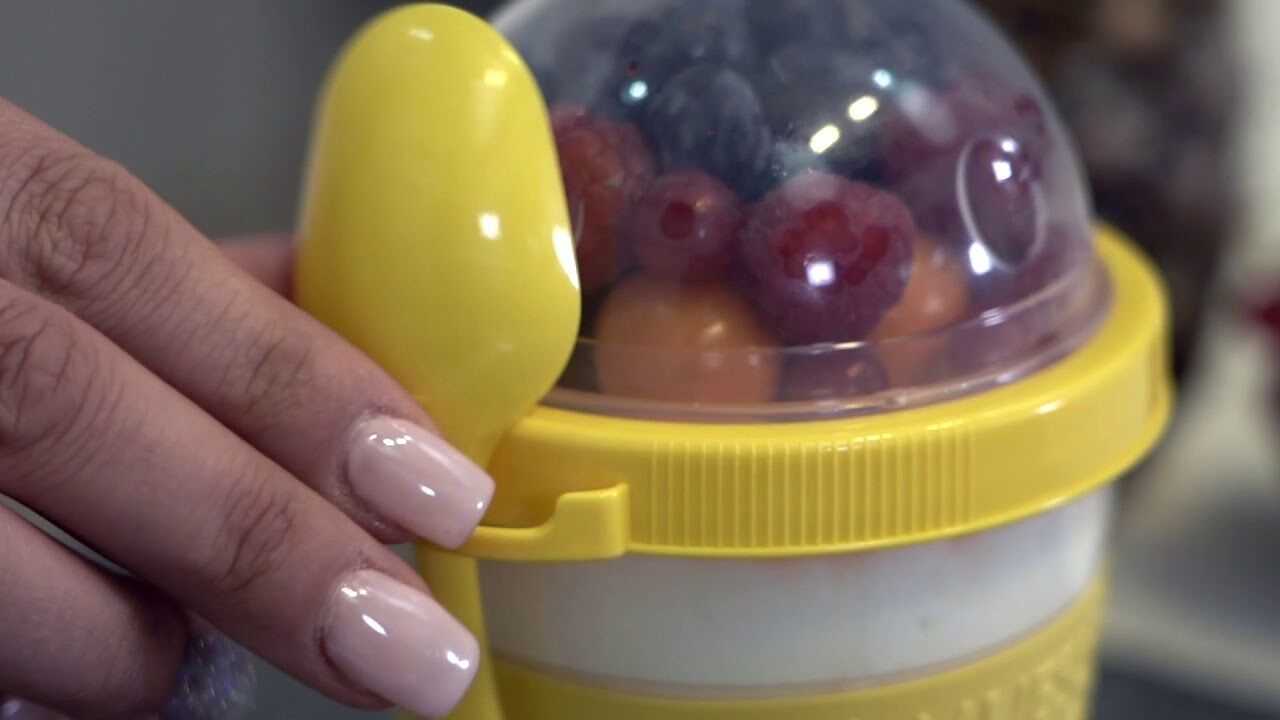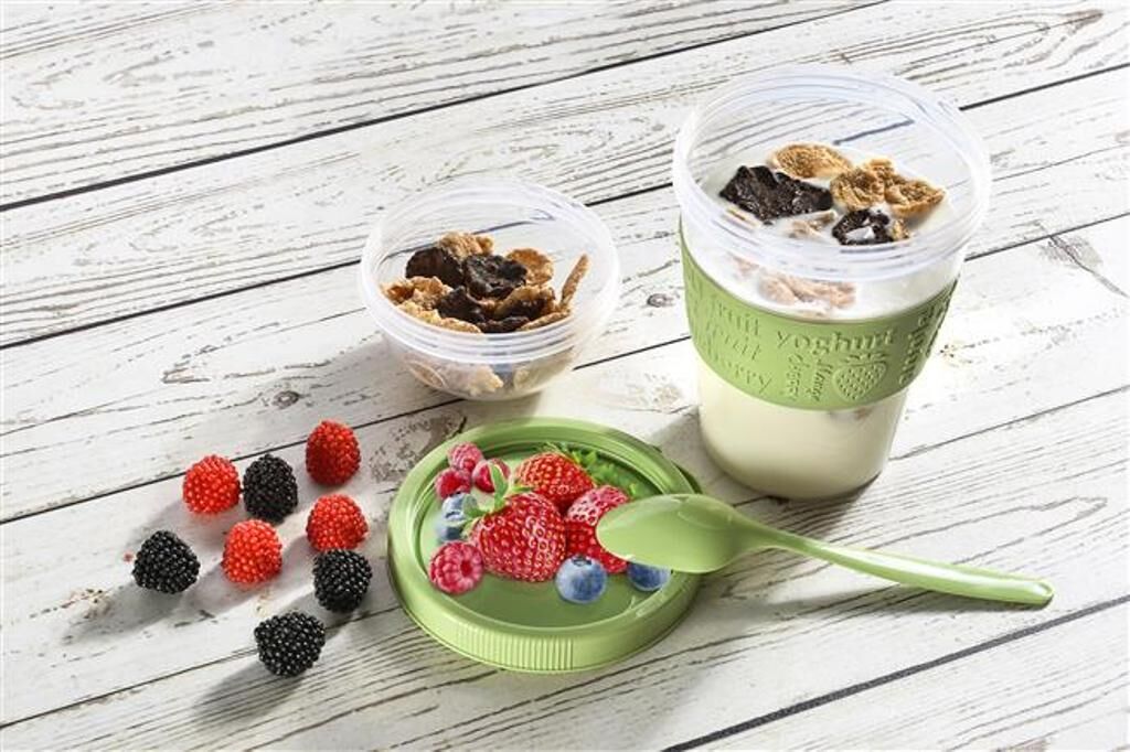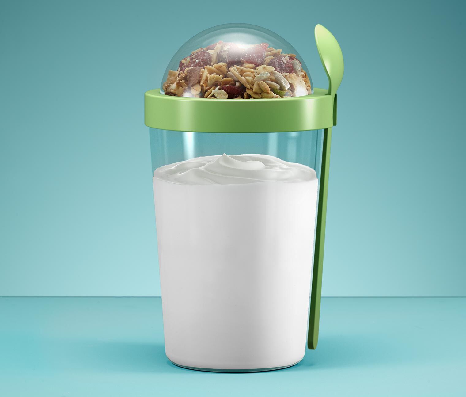 - Özellikle diyet yaparken hafif ve doyurucu atıştırmalıkların tüketilmesi gerektiği zamanlarda çeşitli meyveler, yulaf ve yoğurt birlikteliği ile hazırladığınız ara öğünlerinizi muhafaza edebileceğiniz kapaklı ve kaşık haznesi olan yoğurt kabıdır.