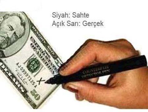 Kalemle paranın üzerini çizdiğinizde sarı renk olursa para gerçektir.