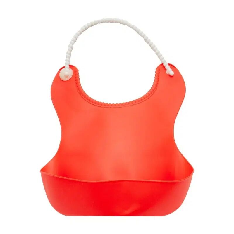 - 1 adet Pelikan Silikon Mama Önlüğü / Silikon Hazneli Bebek Mama Önlüğü - Kırmızı