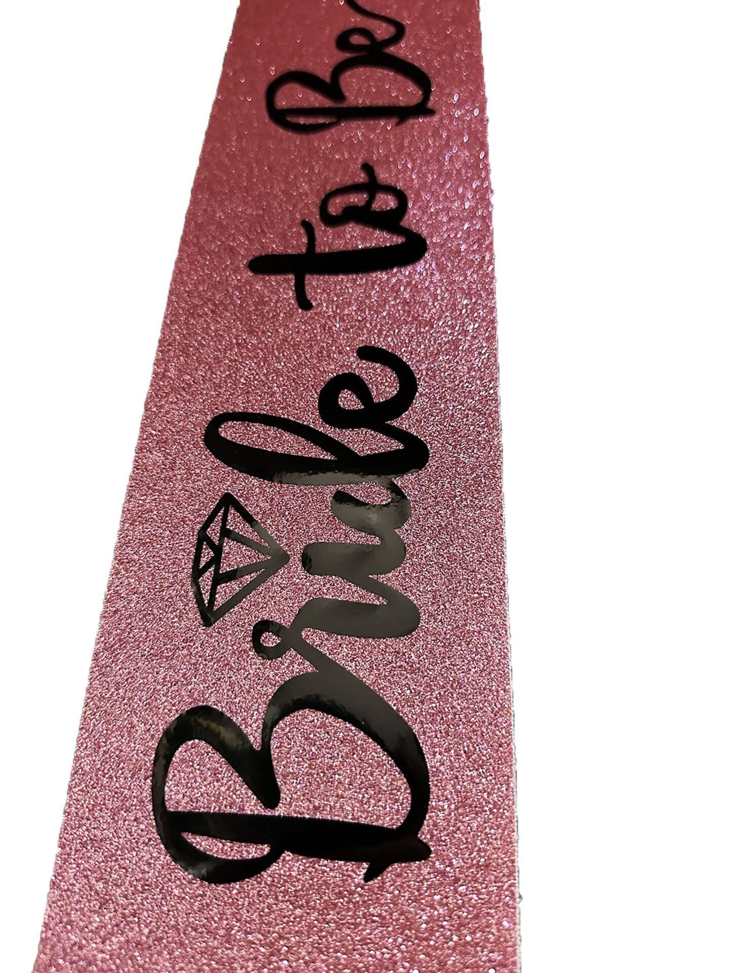 Pembe Üzeri Siyah İtalik Alyanslı Bride To Be Yazılı Simli Işıltılı Kuşak Kemer 10x80 cm