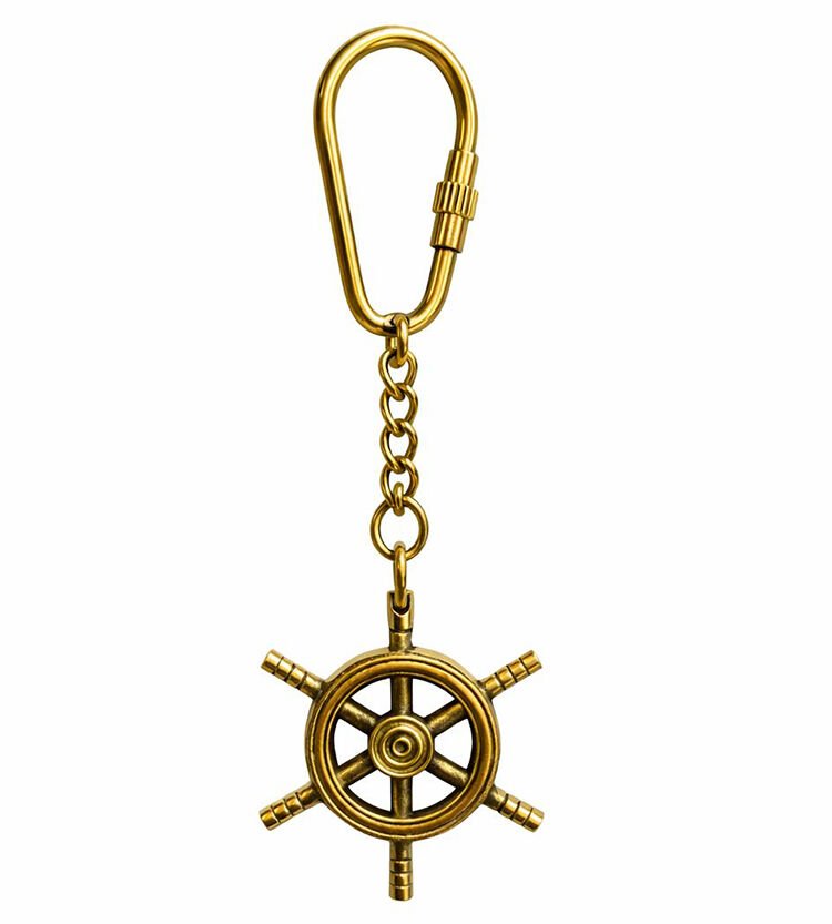 Pirinç Dümen Anahtarlık - Model 2, deniz tutkunları ve koleksiyon severler için özel olarak tasarlanmış, klasik hatlara sahip estetik bir aksesuardır. 12 cm toplam uzunluğu ile dikkat çeken bu model, anahtarlarınızı bir arada tutarken aynı zamanda şık bir duruş sergiler. Pirinç görünümlü kaliteli malzeme yapısı sayesinde darbelere ve aşınmaya karşı direnç gösteren ürün, uzun ömürlü bir kullanım vaat eder. Geleneksel gemi dümeni figürü, ince işçilikle detaylandırılarak marin temalı dekorasyon meraklıları için ideal bir parça haline getirilmiştir. Sağlam metal halkası ve zincir bağlantısı, anahtarlarınızın güvenle taşınmasını sağlar. Bu pirinç anahtarlık, hem günlük kullanımda hem de çanta süsü olarak estetik bir tamamlayıcıdır. Denizci ruhunu her an yanınızda taşımanıza imkan tanıyan bu dümen figürlü anahtarlık, sevdikleriniz için de oldukça anlamlı ve kaliteli bir hediyelik eşya seçeneği oluşturur.