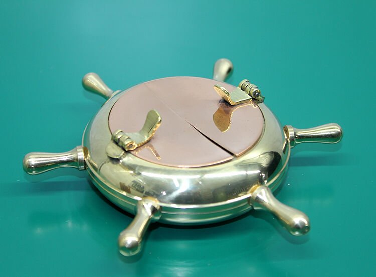 PİRİNÇ DÜMENLİ KAPAKLI KÜLLÜKÜrün ÖzellikleriDayanıklı pirinç malzemeden üretilen dümen figürlü küllük, 13 cm çapındadır. Denizcilik temalı dekoratif tasarımı sayesinde hem işlevsel hem de estetik bir obje olarak kullanılabilir. Pirinç malzemenin sağlam yapısı uzun ömürlü kullanım sunarken, şık ve vintage görünümüyle masa veya sehpa üzerinde zarif bir tamamlayıcıdır. Koleksiyon severler ve deniz temalı dekorasyon sevenler için ideal bir aksesuardır.Paket İçeriği1 adet pirinç dümenli küllük.