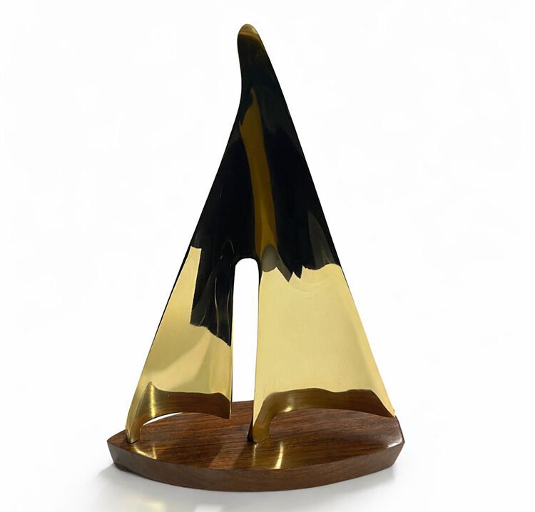 Pirinç Yelken Gemi, denizlerin özgür ruhunu ve modern sanatın zarif hatlarını bir araya getiren prestijli bir dekorasyon objesidir. 23x15 cm boyutlarındaki bu özel tasarım, soyut yelken formu ve aynalanmış yüzeyi ile bulunduğu ortama sofistike bir derinlik katar. Pirinç görünümlü kaliteli malzeme kullanımı sayesinde elde edilen parlak altın tonları, ışığı mükemmel şekilde yansıtarak çalışma masanıza veya rafınıza lüks bir dokunuş sağlar. Ürünün altında yer alan dairesel ahşap stand, metalin ışıltısı ile doğal dokunun kusursuz uyumunu sunarken biblonun dengeli ve şık bir şekilde sergilenmesine olanak tanır. Bu dekoratif yelkenli biblosu, minimalist ve çağdaş dekorasyon stilleriyle harika bir uyum yakalarken marin temalı mekanlar için de vazgeçilmez bir tamamlayıcıdır. Hem deniz tutkunları hem de vizyon sahibi sevdikleriniz için unutulmaz bir hediyelik eşya seçeneği olan bu parça, kaliteden ödün vermeyen bir işçiliğe sahiptir. Estetik ve dayanıklılığı buluşturan bu pirinç yelkenli, ofis ve evlerinizde dikkatleri üzerine çeken en şık dekoratif aksesuar modellerinden biridir.