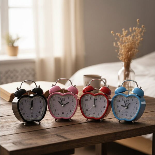 Renkli Kalp Masa Çalar Saati, sevgi dolu tasarımıyla hem zamanı takip etmenizi sağlıyor hem de dekorasyonunuza romantik bir dokunuş katıyor. Kalp formundaki özgün kasası ve canlı renk seçenekleriyle özellikle çocuk odaları, genç odaları ve yatak odaları için vazgeçilmez bir aksesuar olan bu kalp çalar saat, her sabahı daha neşeli hale getiriyor. Yüksek kaliteli renkli plastik kasası ve klasik üstten çanlı (kulaklı) estetiğiyle nostalji ve modernliği bir araya getirir. Kadran çevresindeki taşlı detaylar şıklığını artırırken, okunaklı rakamları zamanı kolayca takip etmenizi sağlar. Gece saat takibini kolaylaştıran ışıklı kadran fonksiyonu ve her yere rahatça yerleştirilebilen kompakt yapısıyla son derece işlevseldir. Pilli çalışma sistemi sayesinde kablo derdi olmadan her yerde kullanılabilir. Hem kendiniz için şık bir masa saati hem de sevdikleriniz için anlamlı bir hediyelik obje arıyorsanız, bu kalp tasarımlı model en sempatik tercihlerden biridir.