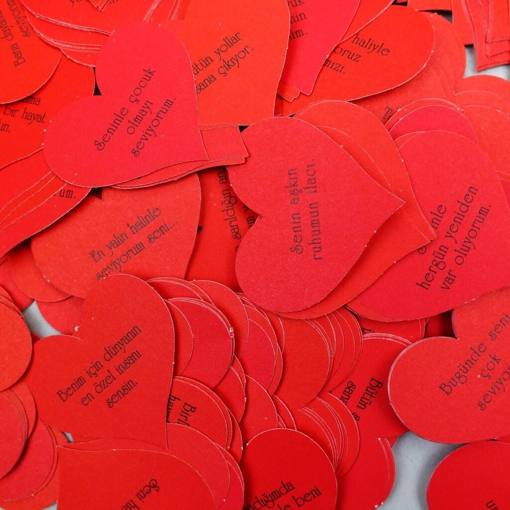 Seni Seviyorum Çünkü Bir Sürü Nedenim Var Sözleri, hislerinizin tercümanı olacak. Özel kırmızı kutusu içinde gönderilen tam 100 adet sevgi cümlesi sevgilinize onu neden ve ne kadar çok sevdiğinizi anlatacak.