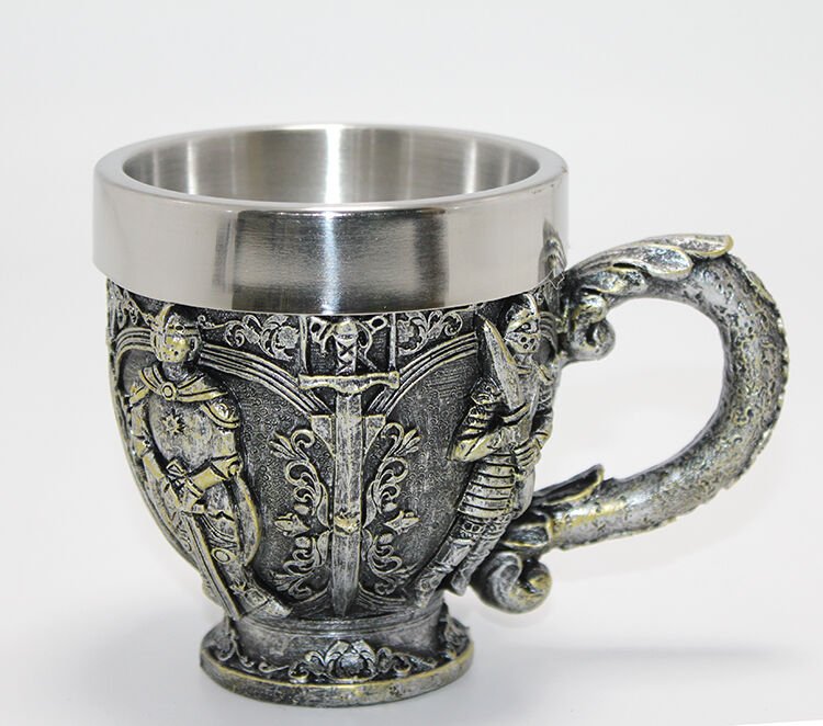 1 Adet Şövalye Kabartmalı Paslanmaz Çelik Kupa Bardak
