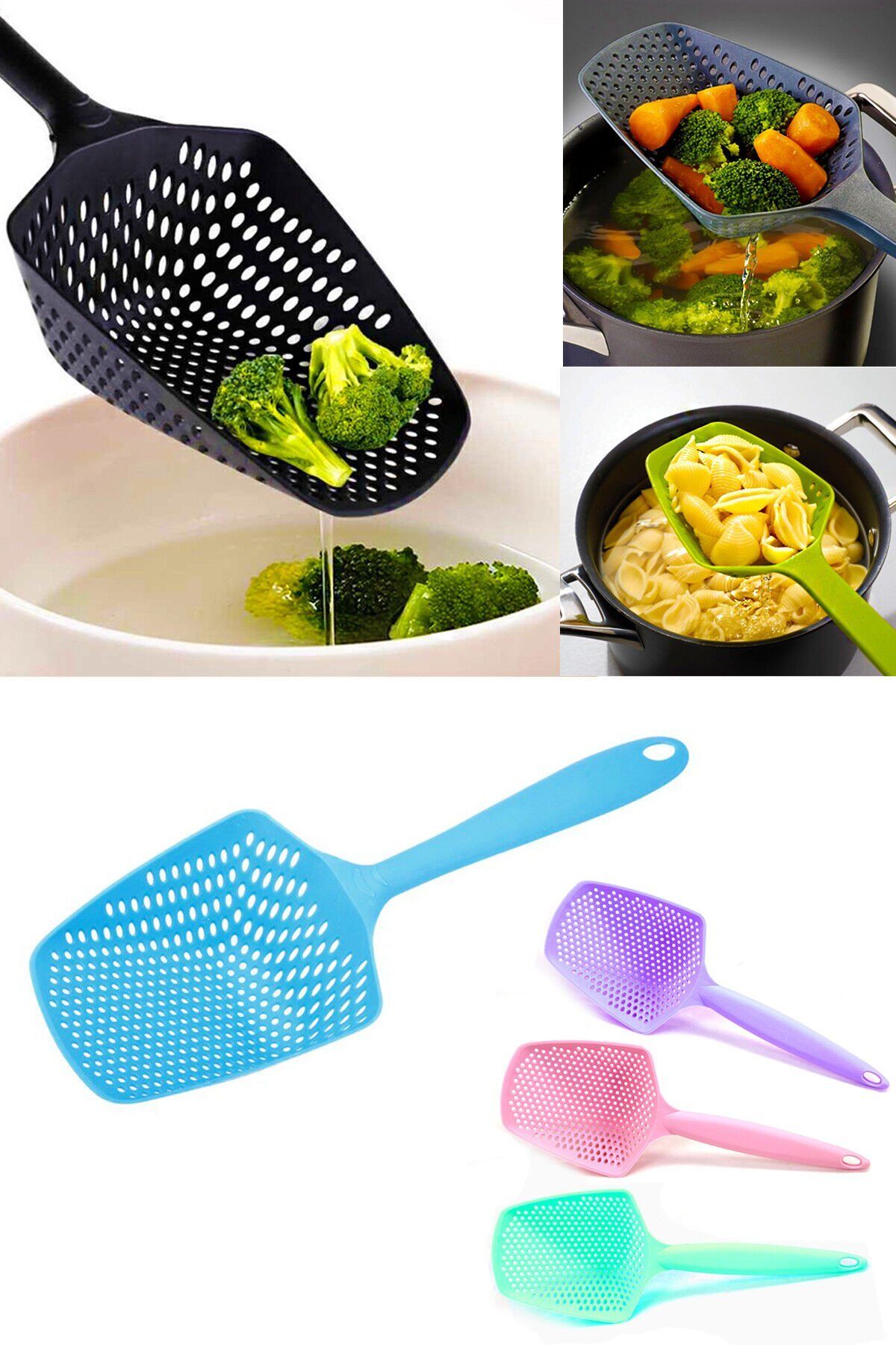Büyük delikleri ve geniş hacmi sayesinde süzgece gerek kalmaksızın makarna, sebze ve kızartmalarınızı tencereden rahatlıkla almanızı sağlayacak harika bir ürün Süzgeçli Kepçe !