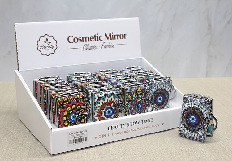 TAŞLI EL AYNASI ANAHTARLIK MODEL 1 Ürün ÖzellikleriTaşlı el aynası anahtarlık model 1, nazar boncuğu baskılı renkli tasarımı ile şık ve dekoratif bir aksesuardır. Göz alıcı taş detayları ve renkli nazar boncuğu baskısı, aynaya estetik bir dokunuş katarak hem işlevsel hem de dekoratif hale getirir. Anahtarlık özelliği, kolay taşınabilirlik sunarak her zaman yanınızda taşımanıza imkan tanır. Kompakt boyutu sayesinde çanta, cüzdan veya anahtar gibi aksesuarlarınızda rahatça taşınabilir. Hem günlük kullanım hem de hediye olarak mükemmel bir seçimdir.Paket İçeriği1 adet Taşlı El Aynası Anahtarlık Model 1