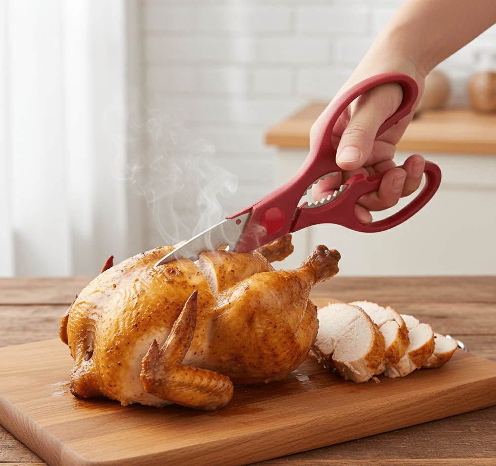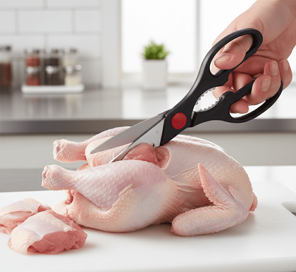 Bu inanılmaz Tavuk Makası Paslanmaz Et ve Tavuk Doğrama Makası her alanda çok işinize yarayacak.