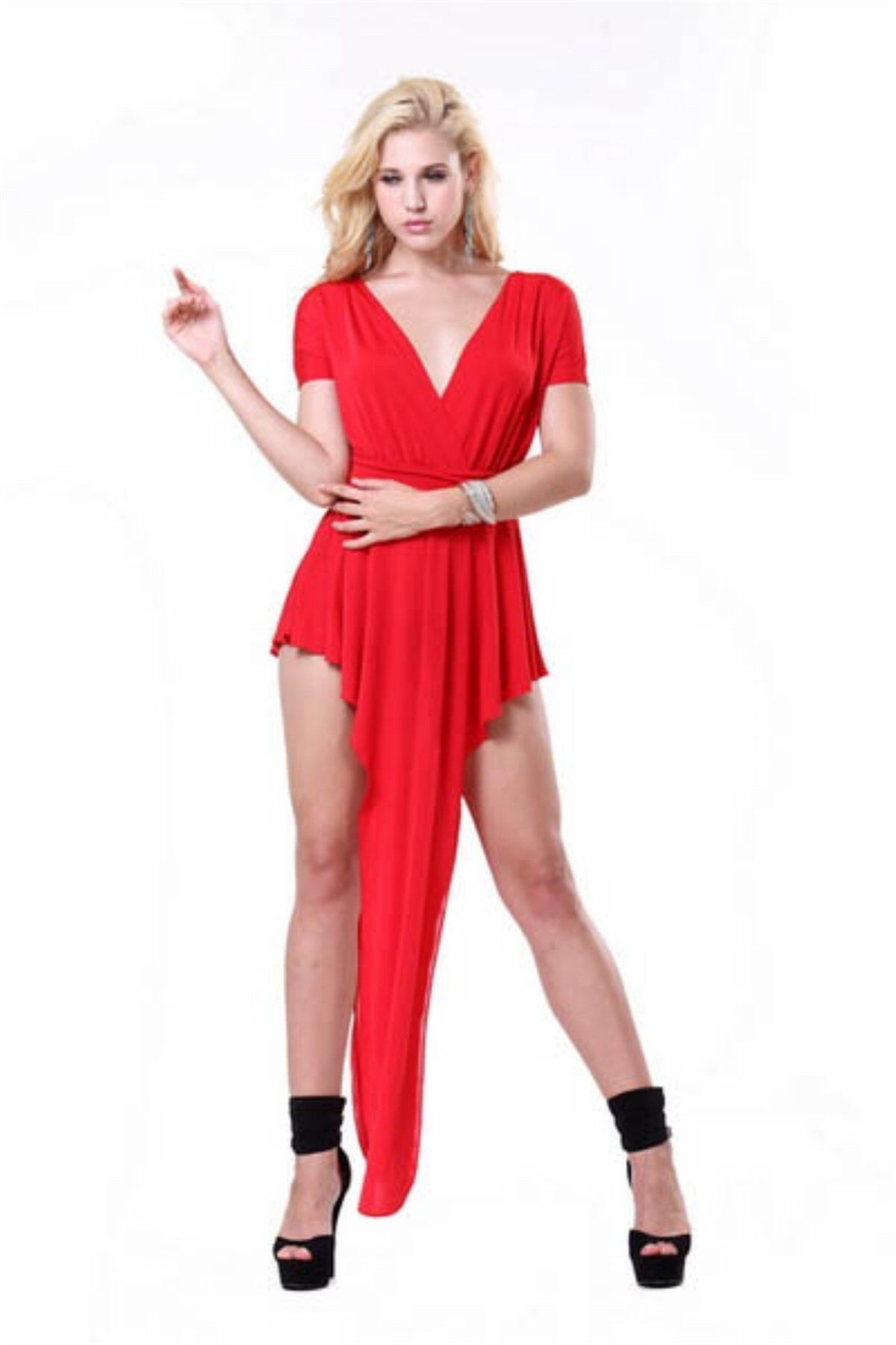 Önü ve arkası uzun volanlı seksi elbise. Renk ve beden seçenekleri mevcuttur.