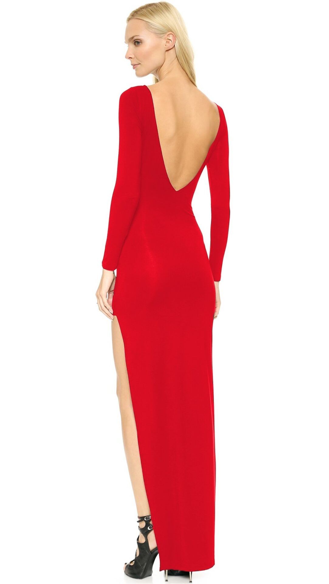 Uzun Kollu , Derin yırtmaçlı Uzun elbise. Sırt dekolteli ve bacak yırtmacı ile seksi giyim sevenler için ideal bir elbise. Esnek likralı kumaştan üretilmiştir. Beden seçenekleri mevcuttur.