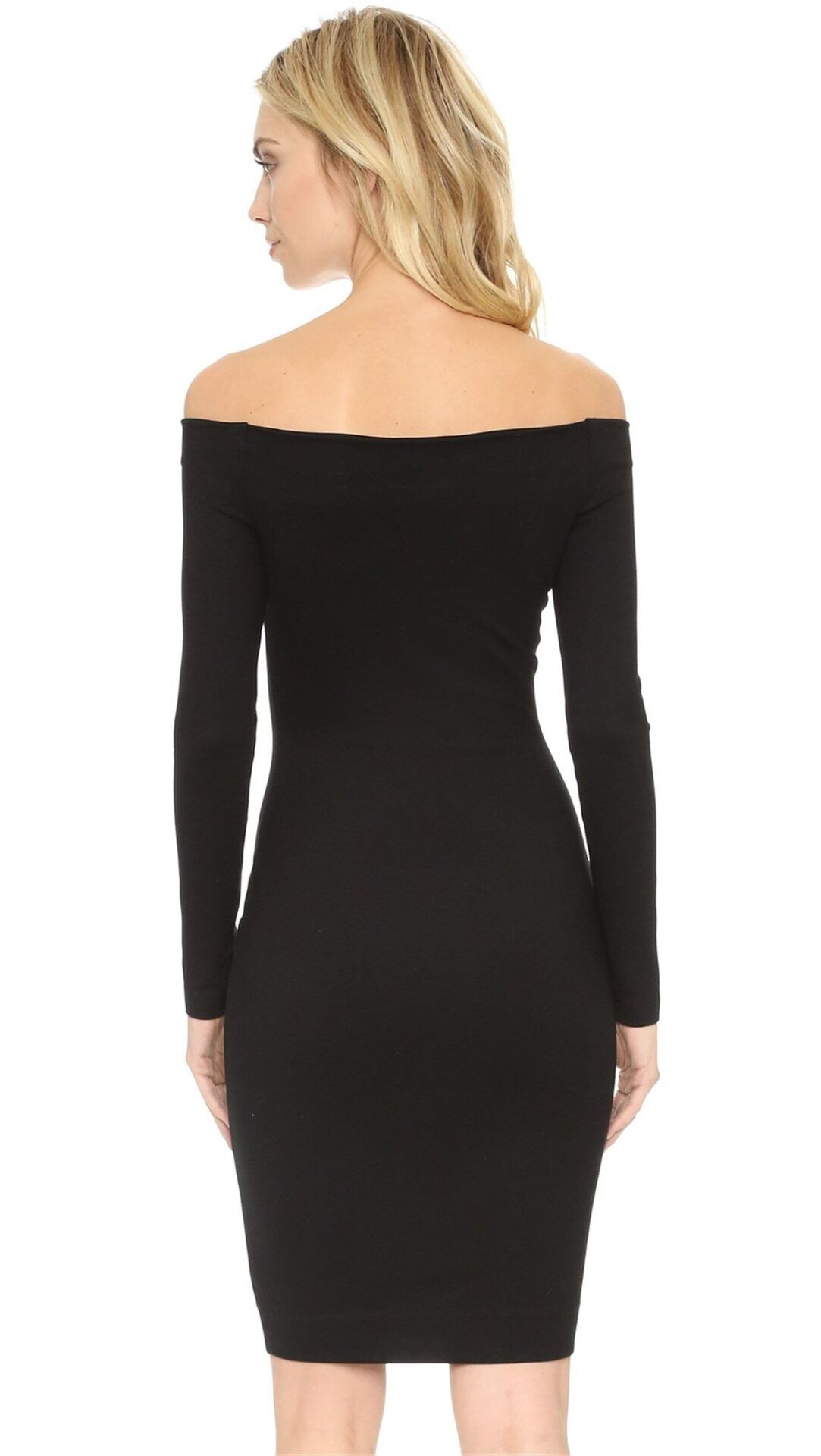 Uzun Kollu straplez elbise. Omuz dekolteli midi elbise. Esnek likralı kumaştan üretilmiştir. Beden ve renk seçenekleri mevcuttur.