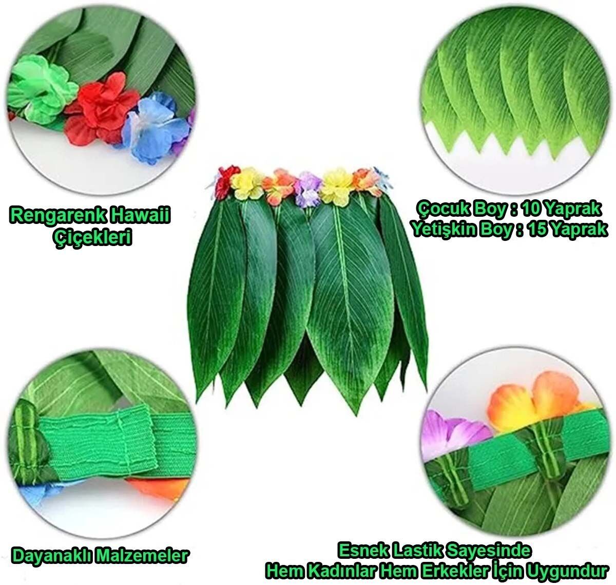 Çocuklarınızın enerjik ve neşeli havasını yansıtan bu şık tropikal esintili Hawaii yapraklı parti eteği, yaz etkinlikleri, doğum günü partileri, plaj gezileri ve daha pek çok özel an için mükemmel bir tercih! Canlı renkler ve tropikal desenler ile miniklere özgürce hareket edebilecekleri rahat bir şıklık sunuyor.